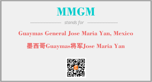英文缩略词“MMGM”经常作为“Guaymas General Jose Maria Yan, Mexico”的英文缩写来使用,中文表示:“墨西哥Guaymas将军Jose Maria Yan”。本文将详细介绍英文缩写词MMGM所代表英文单词,其对应的中文拼音、详细解释以及在英语中的流行度。此外,还有关于缩略词MMGM的分类、应用领域及相关应用示例等。