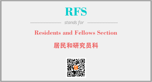 上述内容是“Residents and Fellows Section”作为“RFS”的缩写,解释为“居民和研究员科”时的信息,以及英文缩略词RFS所代表的英文单词,其对应的中文拼音、详细解释以及在英文中的流行度和相关分类、应用领域及应用示例等。
