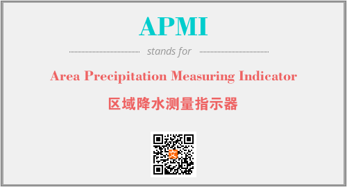 上述内容是“Area Precipitation Measuring Indicator”作为“APMI”的缩写,解释为“区域降水测量指示器”时的信息,以及英文缩略词APMI所代表的英文单词,其对应的中文拼音、详细解释以及在英文中的流行度和相关分类、应用领域及应用示例等。