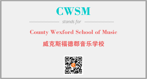以上为County Wexford School of Music英文缩略词CWSM的中文解释,以及该英文缩写在英语的流行度、分类和应用领域方面的信息。