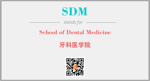 英文缩略词“SDM”经常作为“School of Dental Medicine”的英文缩写来使用,中文表示:“牙科医学院”。本文将详细介绍英文缩写词SDM所代表英文单词,其对应的中文拼音、详细解释以及在英语中的流行度。此外,还有关于缩略词SDM的分类、应用领域及相关应用示例等。
