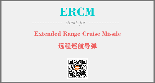 英文缩略词“ERCM”经常作为“Extended Range Cruise Missile”的英文缩写来使用,中文表示:“远程巡航导弹”。本文将详细介绍英文缩写词ERCM所代表英文单词,其对应的中文拼音、详细解释以及在英语中的流行度。此外,还有关于缩略词ERCM的分类、应用领域及相关应用示例等。