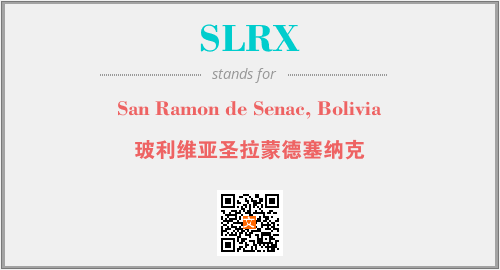 上述内容是“San Ramon de Senac, Bolivia”作为“SLRX”的缩写,解释为“玻利维亚圣拉蒙德塞纳克”时的信息,以及英文缩略词SLRX所代表的英文单词,其对应的中文拼音、详细解释以及在英文中的流行度和相关分类、应用领域及应用示例等。