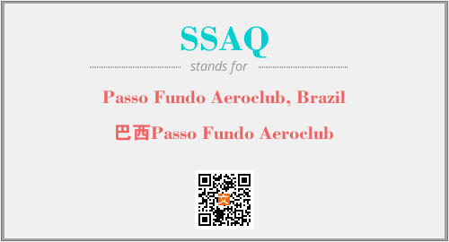 上述内容是“Passo Fundo Aeroclub, Brazil”作为“SSAQ”的缩写,解释为“巴西Passo Fundo Aeroclub”时的信息,以及英文缩略词SSAQ所代表的英文单词,其对应的中文拼音、详细解释以及在英文中的流行度和相关分类、应用领域及应用示例等。
