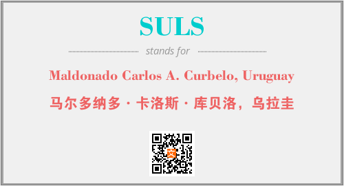 上述内容是“Maldonado Carlos A. Curbelo, Uruguay”作为“SULS”的缩写,解释为“马尔多纳多·卡洛斯·库贝洛,乌拉圭”时的信息,以及英文缩略词SULS所代表的英文单词,其对应的中文拼音、详细解释以及在英文中的流行度和相关分类、应用领域及应用示例等。