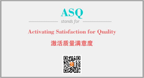 上述内容是“Activating Satisfaction for Quality”作为“ASQ”的缩写,解释为“激活质量满意度”时的信息,以及英文缩略词ASQ所代表的英文单词,其对应的中文拼音、详细解释以及在英文中的流行度和相关分类、应用领域及应用示例等。