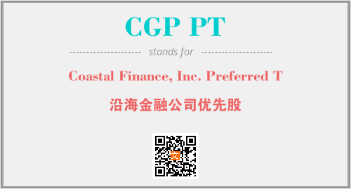 上述内容是“Coastal Finance, Inc. Preferred T”作为“CGP PT”的缩写,解释为“沿海金融公司优先股”时的信息,以及英文缩略词CGP PT所代表的英文单词,其对应的中文拼音、详细解释以及在英文中的流行度和相关分类、应用领域及应用示例等。