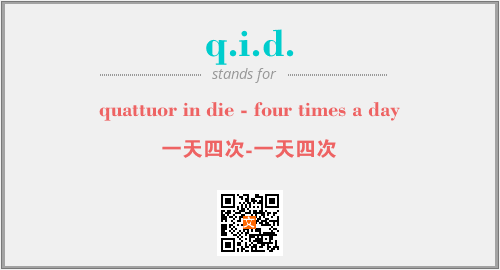 上述内容是“quattuor in die - four times a day”作为“q.i.d.”的缩写,解释为“一天四次-一天四次”时的信息,以及英文缩略词q.i.d.所代表的英文单词,其对应的中文拼音、详细解释以及在英文中的流行度和相关分类、应用领域及应用示例等。