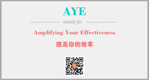以上为Amplifying Your Effectiveness英文缩略词AYE的中文解释,以及该英文缩写在英语的流行度、分类和应用领域方面的信息。