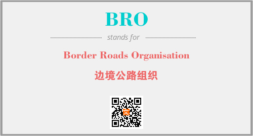 上述内容是“Border Roads Organisation”作为“BRO”的缩写,解释为“边境公路组织”时的信息,以及英文缩略词BRO所代表的英文单词,其对应的中文拼音、详细解释以及在英文中的流行度和相关分类、应用领域及应用示例等。