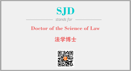 英文缩略词“SJD”经常作为“Doctor of the Science of Law”的英文缩写来使用,中文表示:“法学博士”。本文将详细介绍英文缩写词SJD所代表英文单词,其对应的中文拼音、详细解释以及在英语中的流行度。此外,还有关于缩略词SJD的分类、应用领域及相关应用示例等。