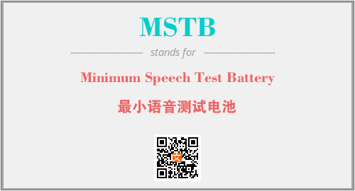 以上为Minimum Speech Test Battery英文缩略词MSTB的中文解释,以及该英文缩写在英语的流行度、分类和应用领域方面的信息。