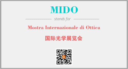 英文缩略词“MIDO”经常作为“Mostra Internazionale di Ottica”的英文缩写来使用,中文表示:“国际光学展览会”。本文将详细介绍英文缩写词MIDO所代表英文单词,其对应的中文拼音、详细解释以及在英语中的流行度。此外,还有关于缩略词MIDO的分类、应用领域及相关应用示例等。