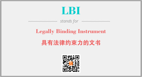 上述内容是“Legally Binding Instrument”作为“LBI”的缩写,解释为“具有法律约束力的文书”时的信息,以及英文缩略词LBI所代表的英文单词,其对应的中文拼音、详细解释以及在英文中的流行度和相关分类、应用领域及应用示例等。