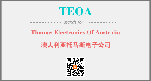 上述内容是“Thomas Electronics Of Australia”作为“TEOA”的缩写,解释为“澳大利亚托马斯电子公司”时的信息,以及英文缩略词TEOA所代表的英文单词,其对应的中文拼音、详细解释以及在英文中的流行度和相关分类、应用领域及应用示例等。