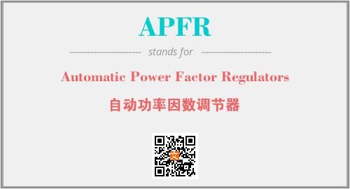 上述内容是“Automatic Power Factor Regulators”作为“APFR”的缩写,解释为“自动功率因数调节器”时的信息,以及英文缩略词APFR所代表的英文单词,其对应的中文拼音、详细解释以及在英文中的流行度和相关分类、应用领域及应用示例等。