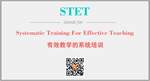 以上为Systematic Training For Effective Teaching英文缩略词STET的中文解释,以及该英文缩写在英语的流行度、分类和应用领域方面的信息。