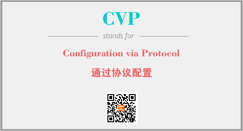 英文缩略词“CVP”经常作为“Configuration via Protocol”的英文缩写来使用,中文表示:“通过协议配置”。本文将详细介绍英文缩写词CVP所代表英文单词,其对应的中文拼音、详细解释以及在英语中的流行度。此外,还有关于缩略词CVP的分类、应用领域及相关应用示例等。
