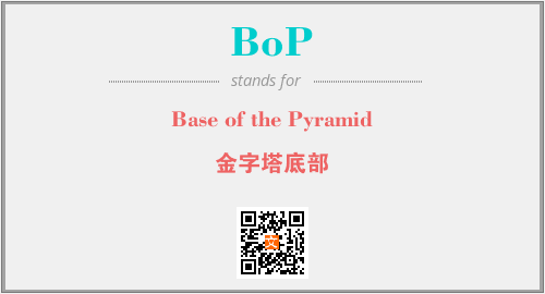 上述内容是“Base of the Pyramid”作为“BoP”的缩写,解释为“金字塔底部”时的信息,以及英文缩略词BoP所代表的英文单词,其对应的中文拼音、详细解释以及在英文中的流行度和相关分类、应用领域及应用示例等。