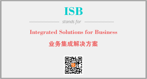 英文缩略词“ISB”经常作为“Integrated Solutions for Business”的英文缩写来使用,中文表示:“业务集成解决方案”。本文将详细介绍英文缩写词ISB所代表英文单词,其对应的中文拼音、详细解释以及在英语中的流行度。此外,还有关于缩略词ISB的分类、应用领域及相关应用示例等。