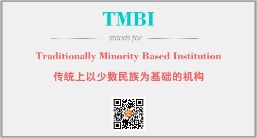 英文缩略词“TMBI”经常作为“Traditionally Minority Based Institution”的英文缩写来使用,中文表示:“传统上以少数民族为基础的机构”。本文将详细介绍英文缩写词TMBI所代表英文单词,其对应的中文拼音、详细解释以及在英语中的流行度。此外,还有关于缩略词TMBI的分类、应用领域及相关应用示例等。