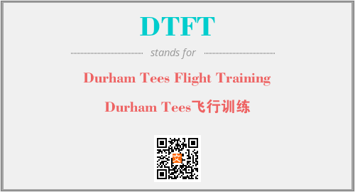 上述内容是“Durham Tees Flight Training”作为“DTFT”的缩写,解释为“Durham Tees飞行训练”时的信息,以及英文缩略词DTFT所代表的英文单词,其对应的中文拼音、详细解释以及在英文中的流行度和相关分类、应用领域及应用示例等。
