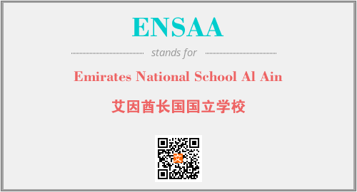 英文缩略词“ENSAA”经常作为“Emirates National School Al Ain”的英文缩写来使用,中文表示:“艾因酋长国国立学校”。本文将详细介绍英文缩写词ENSAA所代表英文单词,其对应的中文拼音、详细解释以及在英语中的流行度。此外,还有关于缩略词ENSAA的分类、应用领域及相关应用示例等。