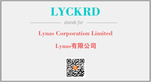 英文缩略词“LYCKRD”经常作为“Lynas Corporation Limited”的英文缩写来使用,中文表示:“Lynas有限公司”。本文将详细介绍英文缩写词LYCKRD所代表英文单词,其对应的中文拼音、详细解释以及在英语中的流行度。此外,还有关于缩略词LYCKRD的分类、应用领域及相关应用示例等。
