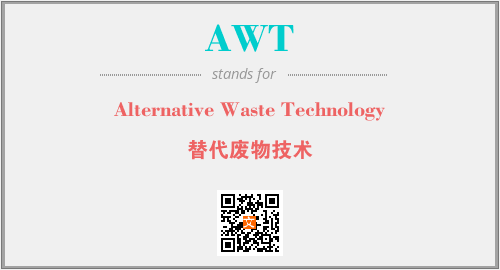 上述内容是“Alternative Waste Technology”作为“AWT”的缩写,解释为“替代废物技术”时的信息,以及英文缩略词AWT所代表的英文单词,其对应的中文拼音、详细解释以及在英文中的流行度和相关分类、应用领域及应用示例等。