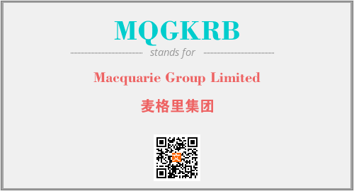 上述内容是“Macquarie Group Limited”作为“MQGKRB”的缩写,解释为“麦格里集团”时的信息,以及英文缩略词MQGKRB所代表的英文单词,其对应的中文拼音、详细解释以及在英文中的流行度和相关分类、应用领域及应用示例等。