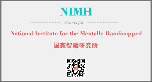 以上为National Institute for the Mentally Handicapped英文缩略词NIMH的中文解释,以及该英文缩写在英语的流行度、分类和应用领域方面的信息。