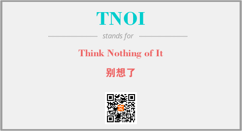以上为Think Nothing of It英文缩略词TNOI的中文解释,以及该英文缩写在英语的流行度、分类和应用领域方面的信息。