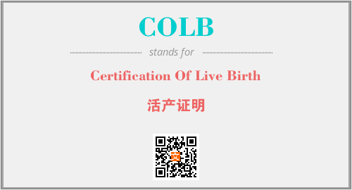 上述内容是“Certification Of Live Birth”作为“COLB”的缩写,解释为“活产证明”时的信息,以及英文缩略词COLB所代表的英文单词,其对应的中文拼音、详细解释以及在英文中的流行度和相关分类、应用领域及应用示例等。