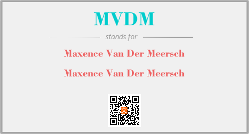 英文缩略词“MVDM”经常作为“Maxence Van Der Meersch”的英文缩写来使用,中文表示:“Maxence Van Der Meersch”。本文将详细介绍英文缩写词MVDM所代表英文单词,其对应的中文拼音、详细解释以及在英语中的流行度。此外,还有关于缩略词MVDM的分类、应用领域及相关应用示例等。