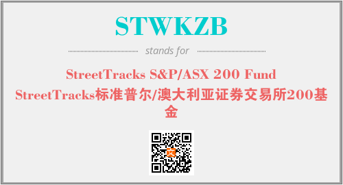 上述内容是“StreetTracks S&P/ASX 200 Fund”作为“STWKZB”的缩写,解释为“StreetTracks标准普尔/澳大利亚证券交易所200基金”时的信息,以及英文缩略词STWKZB所代表的英文单词,其对应的中文拼音、详细解释以及在英文中的流行度和相关分类、应用领域及应用示例等。