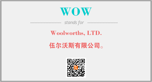上述内容是“Woolworths, LTD.”作为“WOW”的缩写,解释为“伍尔沃斯有限公司。”时的信息,以及英文缩略词WOW所代表的英文单词,其对应的中文拼音、详细解释以及在英文中的流行度和相关分类、应用领域及应用示例等。