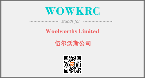 上述内容是“Woolworths Limited”作为“WOWKRC”的缩写,解释为“伍尔沃斯公司”时的信息,以及英文缩略词WOWKRC所代表的英文单词,其对应的中文拼音、详细解释以及在英文中的流行度和相关分类、应用领域及应用示例等。