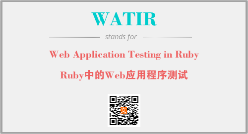 以上为Web Application Testing in Ruby英文缩略词WATIR的中文解释,以及该英文缩写在英语的流行度、分类和应用领域方面的信息。