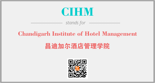 英文缩略词“CIHM”经常作为“Chandigarh Institute of Hotel Management”的英文缩写来使用,中文表示:“昌迪加尔酒店管理学院”。本文将详细介绍英文缩写词CIHM所代表英文单词,其对应的中文拼音、详细解释以及在英语中的流行度。此外,还有关于缩略词CIHM的分类、应用领域及相关应用示例等。