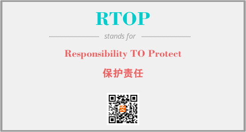 上述内容是“Responsibility TO Protect”作为“RTOP”的缩写,解释为“保护责任”时的信息,以及英文缩略词RTOP所代表的英文单词,其对应的中文拼音、详细解释以及在英文中的流行度和相关分类、应用领域及应用示例等。