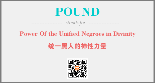 上述内容是“Power Of the Unified Negroes in Divinity”作为“POUND”的缩写,解释为“统一黑人的神性力量”时的信息,以及英文缩略词POUND所代表的英文单词,其对应的中文拼音、详细解释以及在英文中的流行度和相关分类、应用领域及应用示例等。