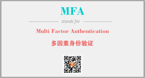 英文缩略词“MFA”经常作为“Multi Factor Authentication”的英文缩写来使用,中文表示:“多因素身份验证”。本文将详细介绍英文缩写词MFA所代表英文单词,其对应的中文拼音、详细解释以及在英语中的流行度。此外,还有关于缩略词MFA的分类、应用领域及相关应用示例等。