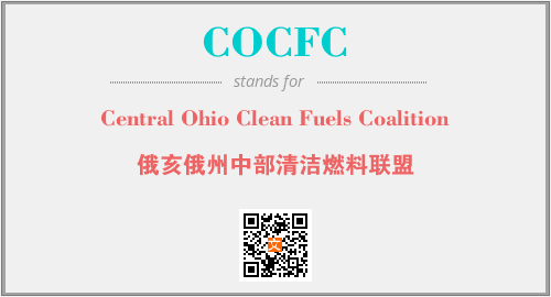 上述内容是“Central Ohio Clean Fuels Coalition”作为“COCFC”的缩写,解释为“俄亥俄州中部清洁燃料联盟”时的信息,以及英文缩略词COCFC所代表的英文单词,其对应的中文拼音、详细解释以及在英文中的流行度和相关分类、应用领域及应用示例等。