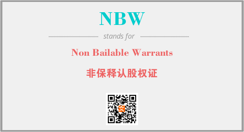 英文缩略词“NBW”经常作为“Non Bailable Warrants”的英文缩写来使用,中文表示:“非保释认股权证”。本文将详细介绍英文缩写词NBW所代表英文单词,其对应的中文拼音、详细解释以及在英语中的流行度。此外,还有关于缩略词NBW的分类、应用领域及相关应用示例等。