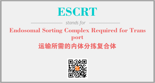 英文缩略词“ESCRT”经常作为“Endosomal Sorting Complex Required for Transport”的英文缩写来使用,中文表示:“运输所需的内体分拣复合体”。本文将详细介绍英文缩写词ESCRT所代表英文单词,其对应的中文拼音、详细解释以及在英语中的流行度。此外,还有关于缩略词ESCRT的分类、应用领域及相关应用示例等。