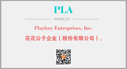 上述内容是“Playboy Enterprises, Inc.”作为“PLA”的缩写,解释为“花花公子企业(股份有限公司)。”时的信息,以及英文缩略词PLA所代表的英文单词,其对应的中文拼音、详细解释以及在英文中的流行度和相关分类、应用领域及应用示例等。