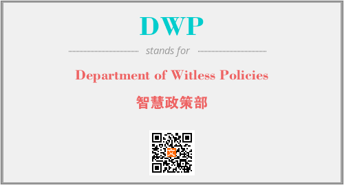 英文缩略词“DWP”经常作为“Department of Witless Policies”的英文缩写来使用,中文表示:“智慧政策部”。本文将详细介绍英文缩写词DWP所代表英文单词,其对应的中文拼音、详细解释以及在英语中的流行度。此外,还有关于缩略词DWP的分类、应用领域及相关应用示例等。