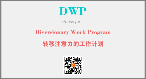 上述内容是“Diversionary Work Program”作为“DWP”的缩写,解释为“转移注意力的工作计划”时的信息,以及英文缩略词DWP所代表的英文单词,其对应的中文拼音、详细解释以及在英文中的流行度和相关分类、应用领域及应用示例等。