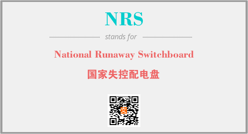 上述内容是“National Runaway Switchboard”作为“NRS”的缩写,解释为“国家失控配电盘”时的信息,以及英文缩略词NRS所代表的英文单词,其对应的中文拼音、详细解释以及在英文中的流行度和相关分类、应用领域及应用示例等。