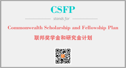 上述内容是“Commonwealth Scholarship and Fellowship Plan”作为“CSFP”的缩写,解释为“联邦奖学金和研究金计划”时的信息,以及英文缩略词CSFP所代表的英文单词,其对应的中文拼音、详细解释以及在英文中的流行度和相关分类、应用领域及应用示例等。